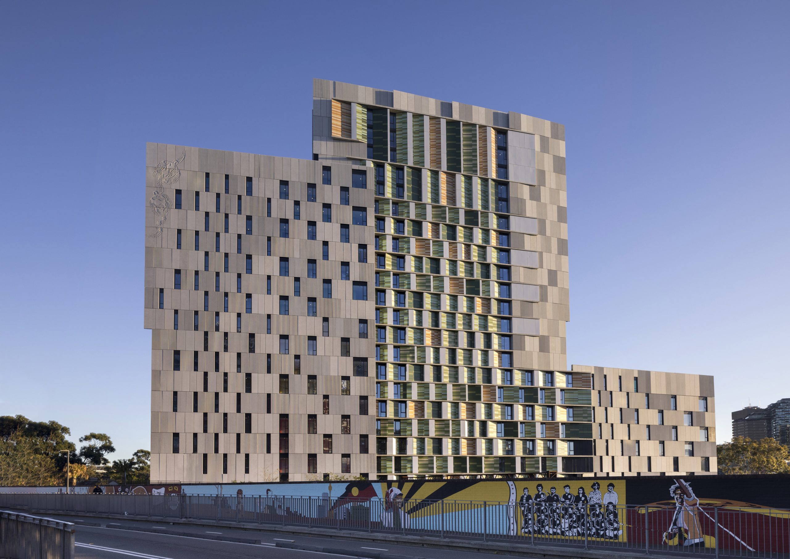 The three precincts of the Pemulwuy Project provide a wide range of benefits to the local Aboriginal and Torres Strait Islander community as well as the broader Redfern community. In addition to the 596-bed student accommodation and 62 affordable housing dwellings delivered in precincts 1 and 3, the provision of a world-class boxing gymnasium for local Indigenous youth and gallery space for emerging local artists add extra layers of social, cultural and economic benefit from the project. These benefits combined with new childcare facilites, offices and retail spaces will support the AHC’s programs for the local indigenous community.