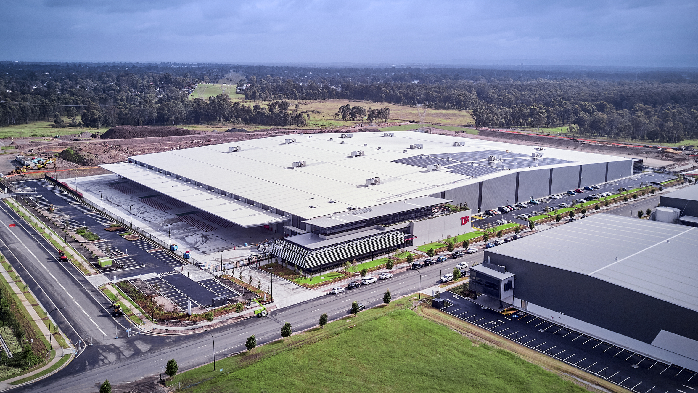 The TJX Australia Distribution Centre at Sydney Business Park is located within Sydney’s North West Growth Centre. The facility sits on approximately 74,000sqm of land within the 256ha master planned estate. The development is comprised of 42,646sqm of distribution centre and 2,213sqm of office, and services the TK Maxx network of stores across Australia. The facility raises that benchmark for staff amenities, incorporating significant staff focused outcomes, the facility includes such elements as the temperature-controlled warehouse environment solely for staff comfort, training and conferencing rooms, mother’s rooms, contemplation room, and large upper level indoor/outdoor staff break out roof deck garden.