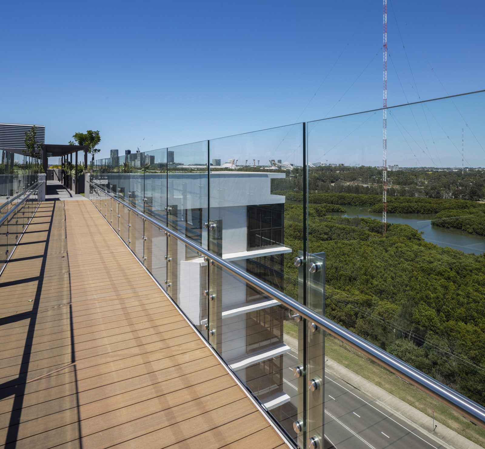 One The Waterfront, Stage 2 is a multi-layered residential apartment development located at the southern end of Wentworth Point, adjacent to Olympic Park. Designed by Stanisic Architects for Piety THP, the 2 hectare, quadrant-shaped site, comprises six, 4 to 9 storey buildings; communal courtyards; a new street (Amalfi Drive); and a new community park (Bay Park). The buildings define a pedestrian through site way that connects Amalfi Drive and Bennelong Parkway and provides secondary access to apartment lobbies. The development is distinguished by roof gardens, wintergardens and sweeping built from that defines the community park.